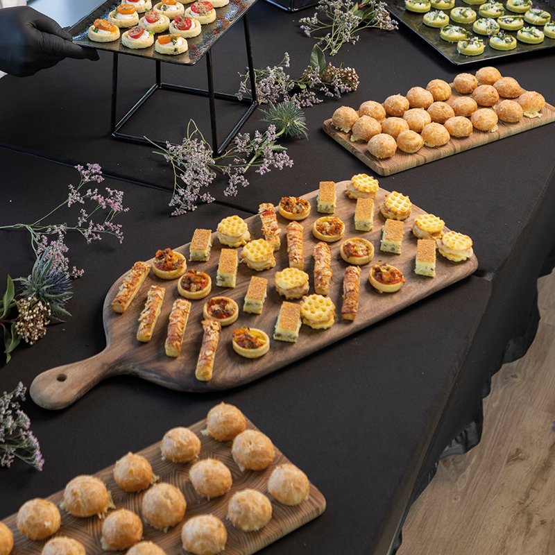 The Street Food Platter revisits international street food favourites in an elegant and indulgent canapé format. Hot dog, fish and chips, burger and pizza: iconic staples reinterpreted using quality ingredients such as cod, Comté PDO cheese and smoked sausage. A variety of textures and flavours that delivers a rich and sociable experience.