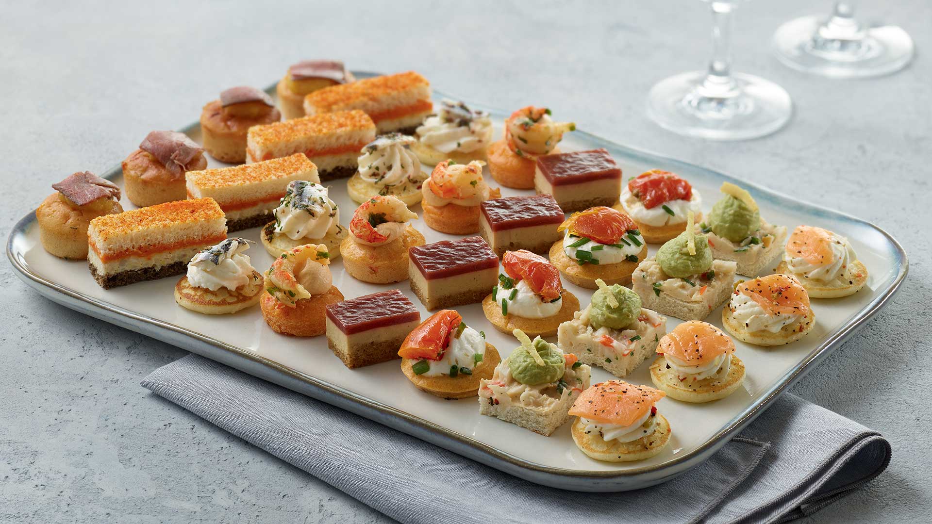 With elegant visuals and carefully designed recipes, these treats will bring style to your cocktail party buffets, your seminar breaks or your drinks before dinner. Furthermore, this tray of savoury canapés varies textures and flavours, to the enjoyment of everyone.