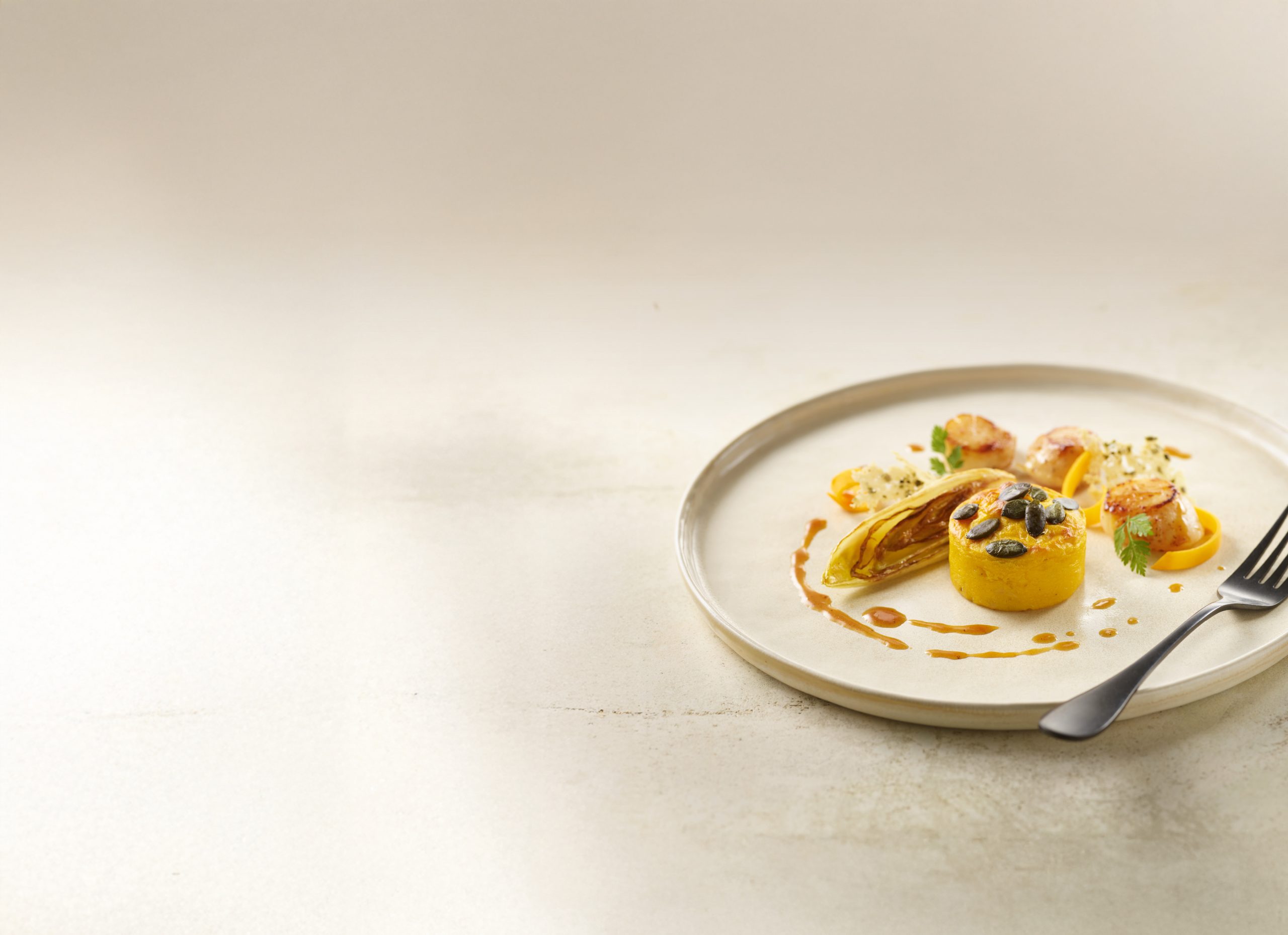 Traiteur de Paris > Recipe Inspiration > Festive Recipes > Recipe – Butternut Squash Mousseline, Seared scallops braised endives